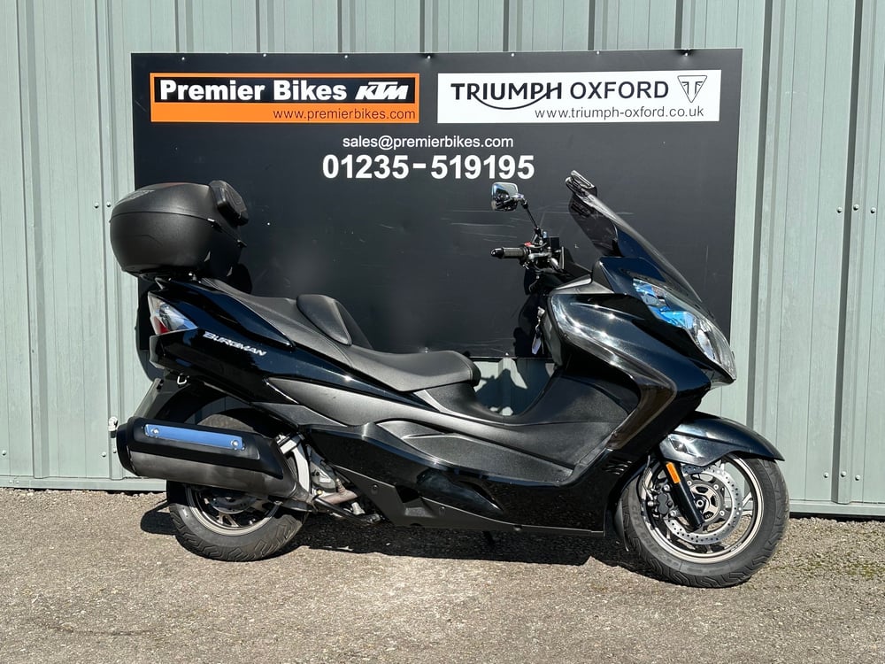 We now have this Stunning 2013/63 Suzuki Burgman 400. This Awesome Machine comes with 7 Service Stamps and is Kitted with Heated Grips, Tinted Fly-Screen, Screen Extender, Front Fender Extender, Givi Top Box with Pillion Backrest and ABS. Please ask for any additional pictures or we can also offer a personal video presentation of the bike for you. Px very welcome, UK delivery can be arranged, Finance available (subject to your status), Call our experienced sales team now on 01235 519195 or email us at sales@premierbikes.com – Thanks for looking, Check out all of our other bikes at www.Premierbikes.com - Not all Bikes are on site, please contact us to arrange a viewing.